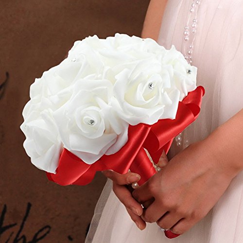 NiceEshop (TM)-Bouquet di fiori artificiali, per matrimonio Rosso scuro