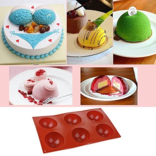 Niceeshop (TM) cute silicone non stick cake Bread Mold Chocolate baking Mould, Silicone, Red, 6 Cavity Half Sphere Shape Mold