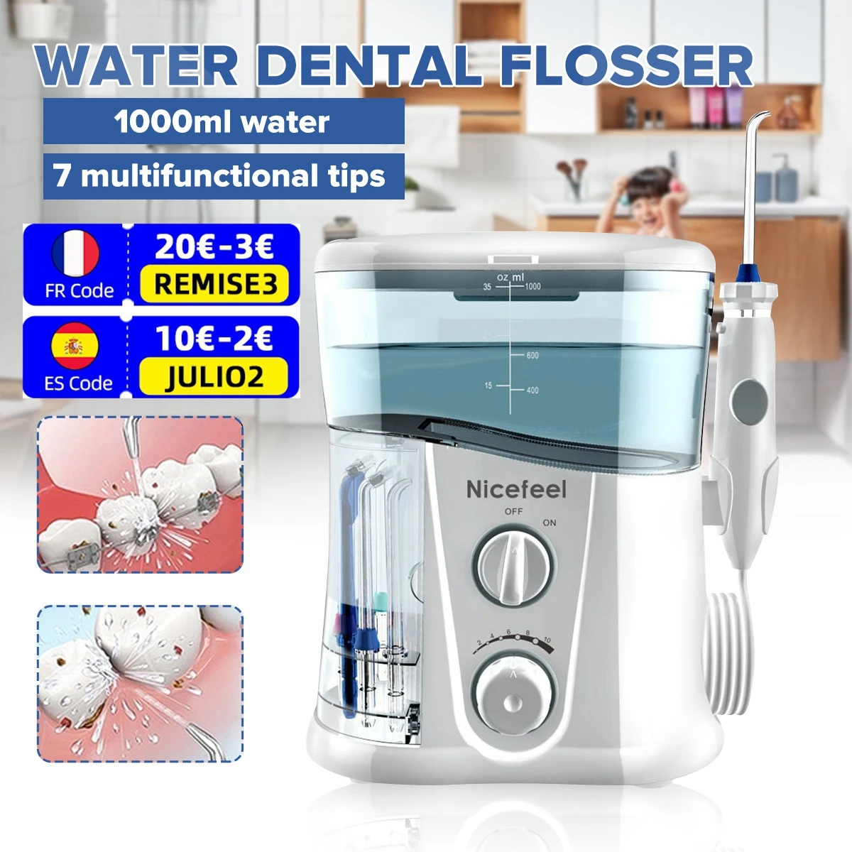 Nicefeel 1000ML Water Dental Flosser Electric Oral Irrigator Care Dental Flosser Water Toothbrush Dental SPA with 7pcs Tips