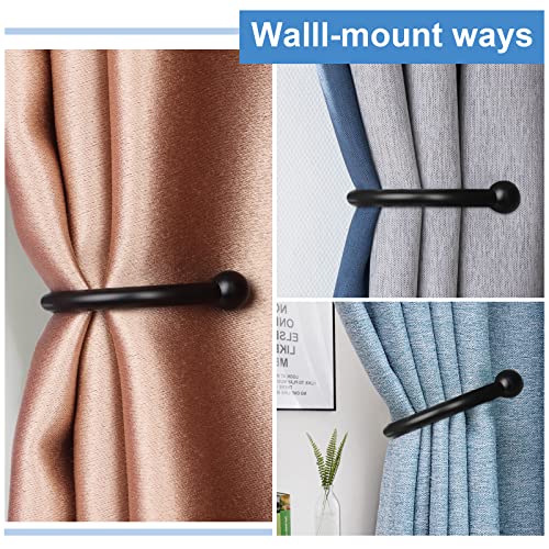 NiceLand 2 Pezzi Fermatenda da Tenda in Metallo, Ganci per Tende a U Fermatenda da Parete Nero da Muro con Viti