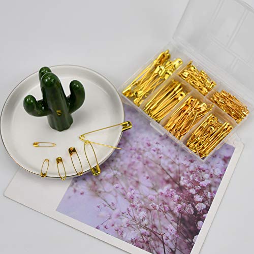 NiceLand Pin di Sicurezza Oro 250 Pezzi Spille da Balia Inossidabile Spilli da Cucito con Scatola Portaoggetti per Casa Ufficio Maglieria 55 mm 45 mm 36 mm 32 mm 28 mm 22 mm