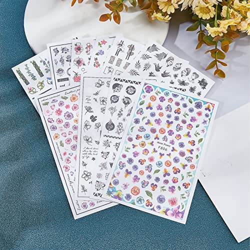 NICENEEDED 10 Fogli Foglie Fiori Adesivi per Unghie, Decalcomanie per Unghie Autoadesive 3D, Adesivi per Nail Art In Bianco e Nero per Le Donne Nail Art Fai Da Te
