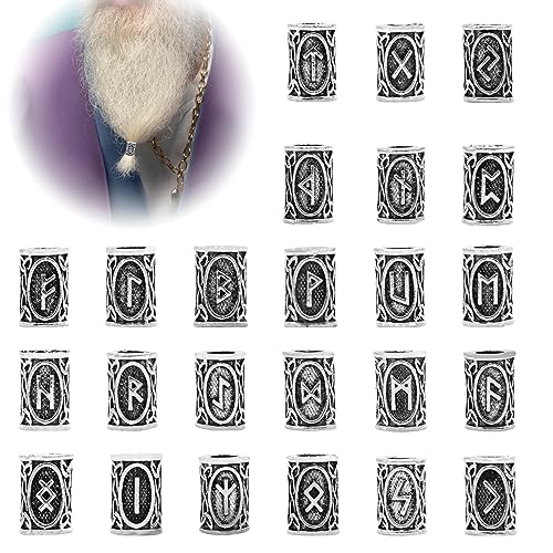 NICENEEDED 24 pezzo di Perline per Barba per Capelli, Norse Viking Dreadlocks Accessori per Gioielli per Intrecciare I Capelli, Anelli di Bobine di Clip In Metallo Argentato