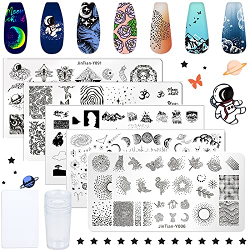 NICENEEDED Set di Piastre per Timbri per Nail Art con, 5pcs Modelli di Timbri per Unghie con Stampino per Unghie e Raschietto per Unghie, Piastra per Unghie con Animali Della Stella