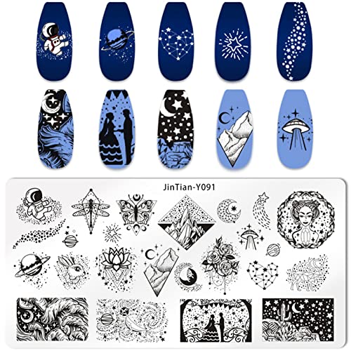 ♕[DESIGN DEL CIELO STELLATO]: le lastre per immagini dei modelli di unghie hanno diversi bellissimi motivi come la luna, stella, cielo stellato, animale, geometria e altro, puoi scegliere qualsiasi lamina ungueale per realizzare un buon design delle unghie con lo stampino quello che vuoi.