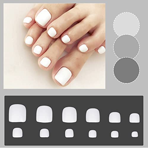 NICENEEDED Solid White Press Sulle Unghie Dei Piedi, Punte per Unghie Finte A Copertura Totale Quadrate Corte Da 24 pezzo, Unghie Da Spiaggia In Acrilico Bianco Lucido per Unghie Dei Piedi di Donne e