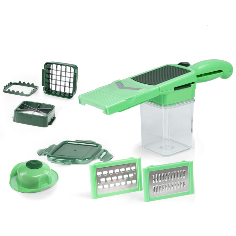 Quick Professional, kit 12 pz., verde La nuova evoluzione: Il Genius Nico Dicer Quick Professional è l'originale dispositivo portatile Nico Dicer con un nuovo e pratico telaio a innesto per ancora più funzioni e flessibilità nella vostra cucina! Con questo kit di aiuto da cucina avrete diritto a 2 nuovissimi Nico Dicer Quick Professional.Il Genius Nico Dicer Quick Professional è un taglierina per verdure e un'orto in un unico dispositivo. Grazie ai diversi inserti e al telaio a innesto, il robot da cucina intelligente garantisce ancora più innovazione e versatilità durante il taglio. Gli inserti di taglio combinabili del taglierina per verdure Genius combinano numerose varianti di taglio: Dischi, dadi, perni, sei, julenne, Geriebes, hobeled e molto altro ancora in un solo dispositivo. Scoprite il robot da cucina in un nuovo modo. Combina taglierina per cipolle, pialla di cetrioli, purea di patate e molto altro ancora. Tagliare frutta e verdura morbida o dura come ad es. Zucchine