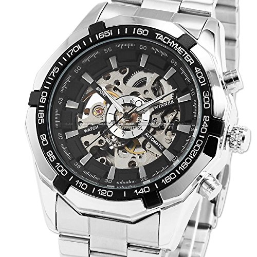 NICERIO Lunetta Black Quadrante Grande in Acciaio Auto-Vento fino Orologio meccanico Automatico WM257, Nero, nero, Orologio meccanico automatico