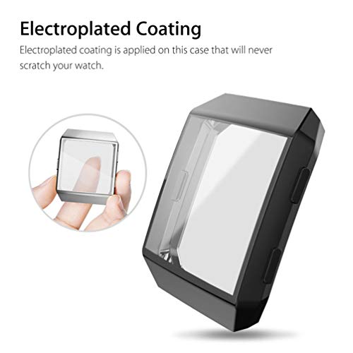 NICERIO 2 pezzi copertura per orologio compatibile con Fitbit Ionic trasparente morbido TPU cornice protettiva (nero, argento)