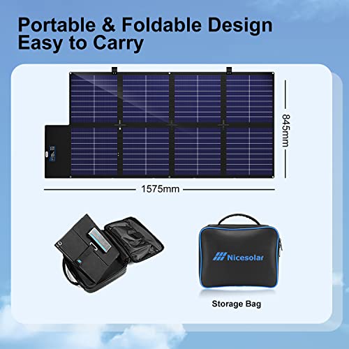 Nicesolar Pannello Solare Portatile 200W per Laptop e Centrale Elettrica Portatile, Caricatore Solare Pieghevole con Doppia USB PD65W IP67 Durevole Impermeabile per Emergenza Campeggio all'aperto