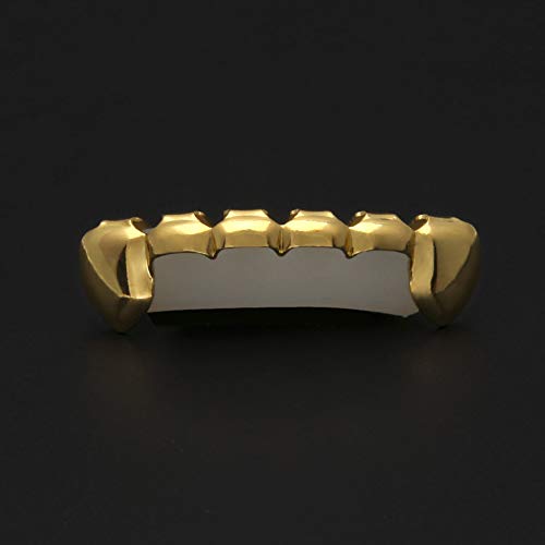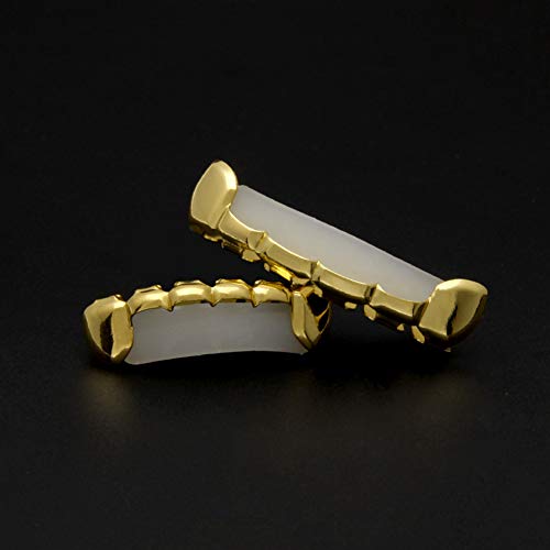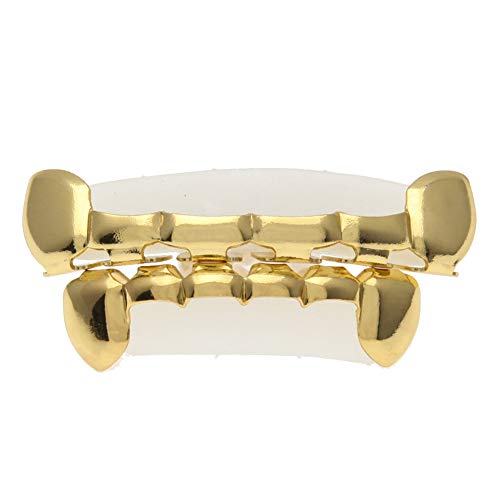 NICEWL Hip Hop Teeth Grillz per Gli Uomini,Vampire Fang Teeth Grills Tooth Caps Top & Bottom Set,Dental Mouth Punk Stile Denti Braces Halloween Decorazione Gioielli,d'oro