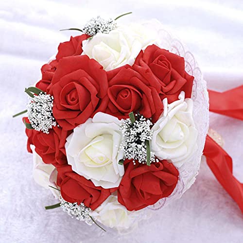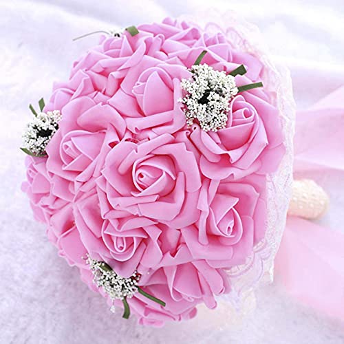 Nicey Bouquet da Sposa Nuziale Damigella d'Onore PE Artificiale Fiore Rosa Perla Finta Bouquet Rosa Forniture per Matrimoni Decorazioni per Festival
