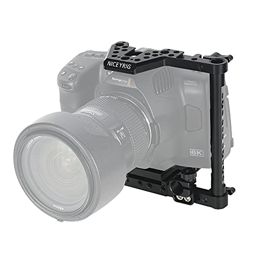 NICEYRIG Mezza Gabbia Fotocamera per BMPCC 6K Pro, con piastra di base a sgancio rapido, piastra superiore e Follow Focus 15 mm Rod Clamp - 453