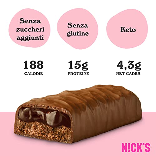 NICKS Barrette Proteiche Keto Brownie | 15g di Proteine | 188 Calorie | Cheto Barretta Proteica Senza Zucchero Aggiunti Low Carb Cioccolato Snack Senza Glutine (12 Protein bar x 50g)