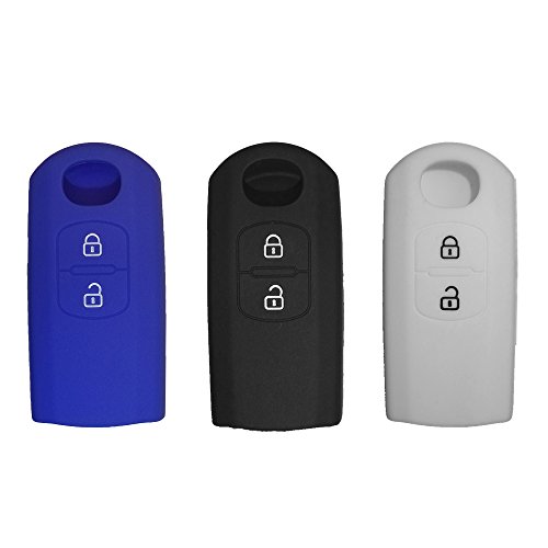 Nicky 3 x Cover Protettiva in Silicone per Chiave Mazda con 2 Tasti (solo Keyless Go) Copertura del Telecomando Automatico Nero Bianco Blu