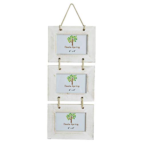 Nicola Spring Cornice Tripla per 3 Foto da Appendere - in Legno Bianco - 15 x 10 cm