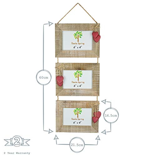 Nicola Spring Cornice Tripla per 3 Foto da Appendere - in Legno con Cuori Rossi - 15 x 10 cm