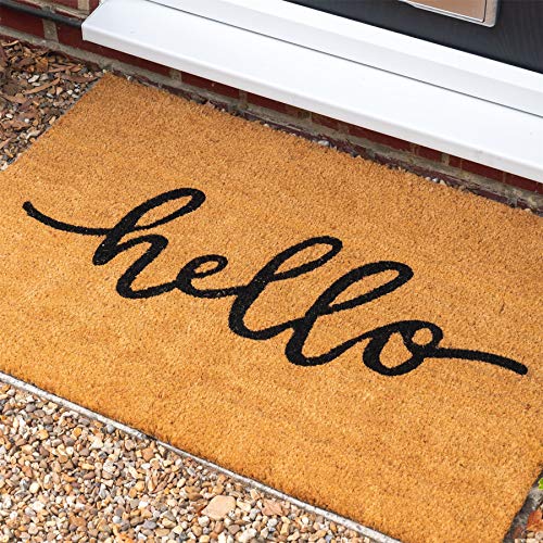Zerbino per l'ingresso di casa Nicola Spring con scritta in acrilico “Hello”.