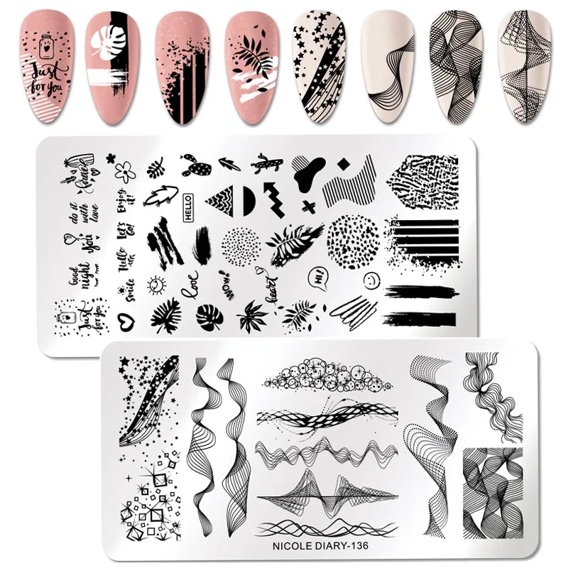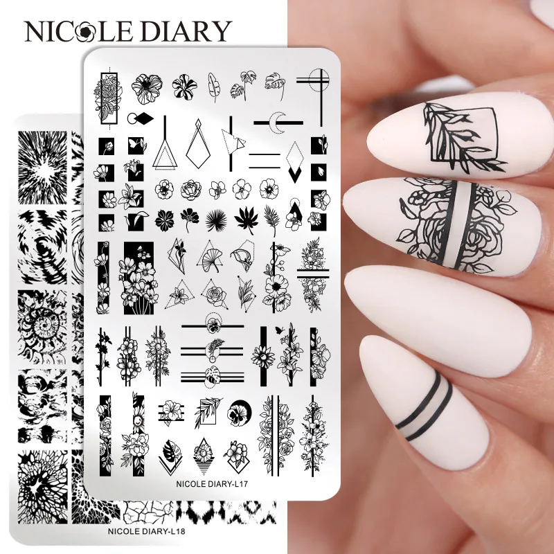 NICOLE DIARY Flowers Pattern Nail Stamping Plates Image Painting Nail Art Stencils Template Nail Stamp Tools