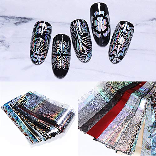 NICOLE DIARY 50 Pz Nail Foil Laser Flower Fiocco di neve Nail Art Transfer Stickers con 1 Pz Nail Foil Colla Nail Art Decoration Set