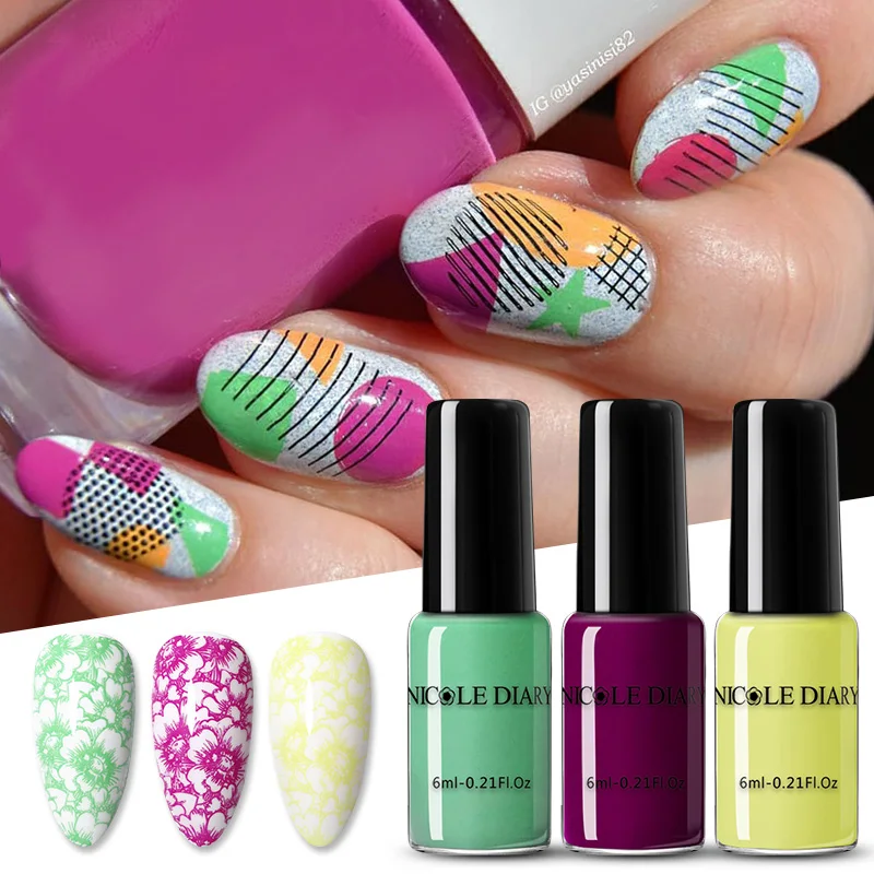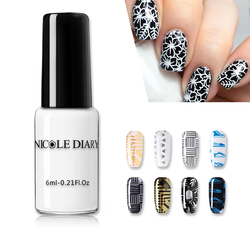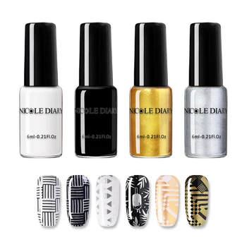 NICOLE DIARY Nail Art Stamping Polish Gold Silver Black White Nail Art Plate Printing Polish Varnish Nail Art Decoration