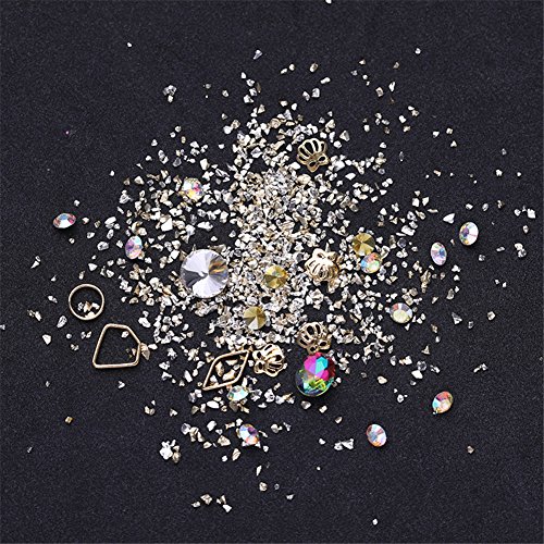 NICOLE DIARY Nail Art Set di Strass Misto Glitter per Unghie Cristallo Irregolare Conchiglia per Unghie Paillettes Borchie in Metallo Adesivi per Unghie Fai da te 3D Decorazione Unghie (4 modelli)