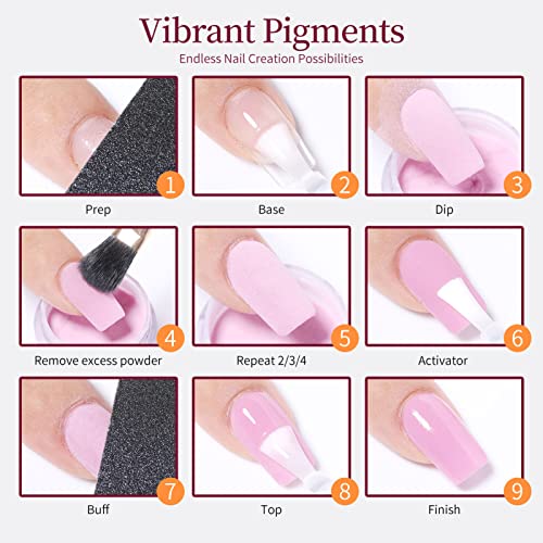 【20 pigmenti luminosi, creazione infinita】Il kit Nicle Dip Powder contiene 20 bellissime tonalità di colori popolari, con cui è possibile creare facilmente diverse nail art e stili perfetti per feste, vacanze, eventi o routine quotidiana