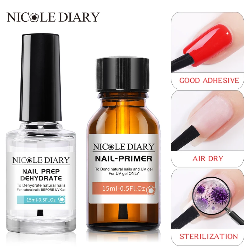 NICOLE DIAYR 15ml Nail NAIL Prep Dehydrator and Nail-Primering Set Long Lasting Air Dry Sterlization Liquid for Gel Polish Tool