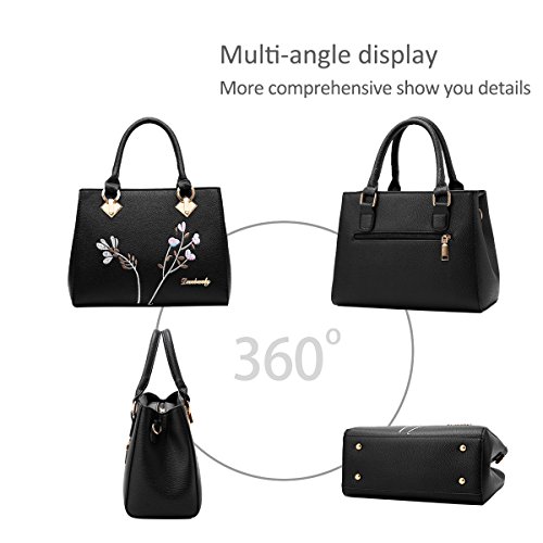 NICOLE & DORIS Borsa a Mano Donna Elegante Borsa a Tracolla con Manico Borse Crossbody Donna Borse Tote PU Pelle con Stampa Ricamo Media Nero