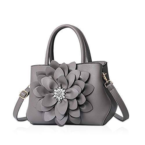 NICOLE & DORIS Borsa donna alla moda a fiori Borsa a mano Borsa a tracolla elegante borsa messenger Borse Tote in PU Pelle Grigio scuro