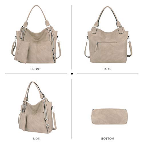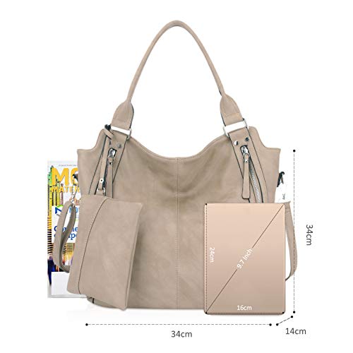 NICOLE & DORIS Borsa Donna 2 pezzi Borsa a Mano Borsa a Tracolla di Grande Capacita Portafoglio Borse da Spalla Elegante Borsetta in Pelle PU Albicocca