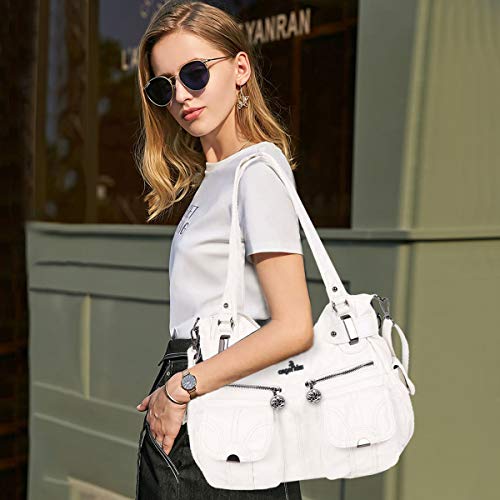 NICOLE & DORIS Borsa a Tracolla Spalla Grande PU Pelle Donna Borsa Messenger da Lavoro Retro Borsa a Mano Progettista Borse Tote Manico Superiore bianca