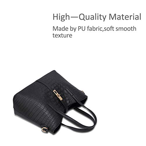 NICOLE & DORIS Set di 3 borse da donna Borse a Mano Borse di borsa 3 pezzi Borsa di totalizzatore + Borse a tracolla + cinturino, borsa di coccodrillo donna Nero