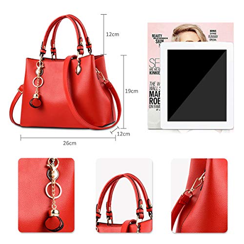 NICOLE & DORIS Borse da donna Borsa a tracolla con cerniera stile moda Borsa a tracolla tote per Borsa con pendente in metallo Borsa in pelle PU da donna Rosso ciliegia