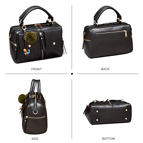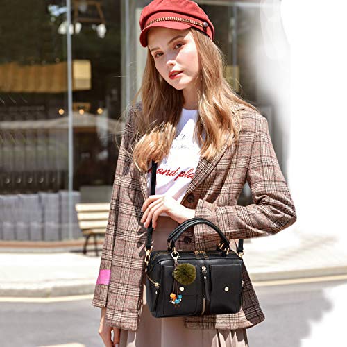 NICOLE & DORIS Moda Borse a Donne Di Cuoio PU Borse a Spalla Maniglia Superiore Borsetta Borsa a Pompon Tracolla Con Cerniera Stile Borsa a Tracolla da Donna Nero