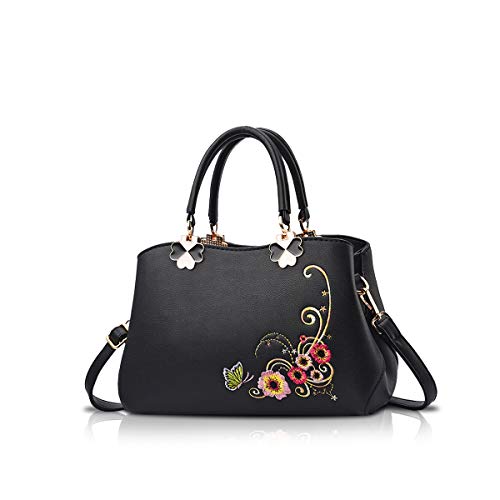 NICOLE&DORIS Donne Borse a mano Retro Borsa a tracolla Le signore Moda Borsa a tracolla Borsa Totalizzatore Ricamo Fiore nero
