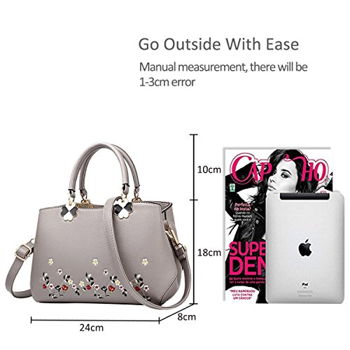 NICOLE&DORIS Donne Fiori Superiore Handle Handbags Borsa a tracollaBorsa Crossbody Totalizzatore Le signore cartella PU Pelle Grigio Fiore