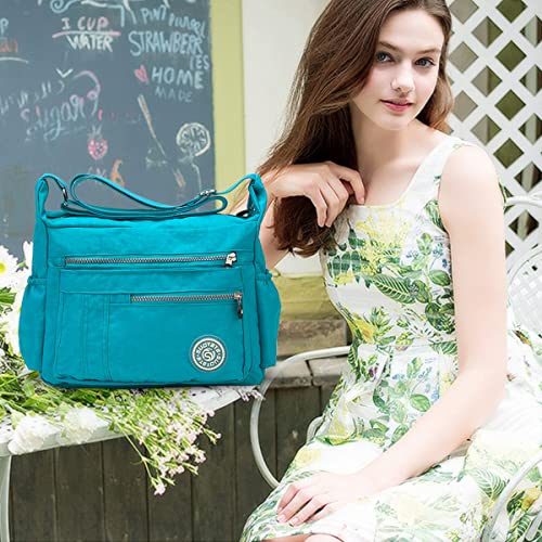 NICOLE&DORIS Moda Donne Messenger Bag Borsa a Tracolla Crossbody Impermeabile Nylon Azzurro