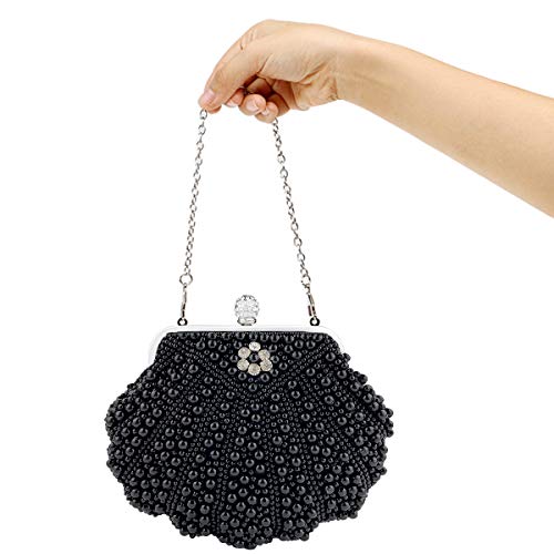 NICOLE & DORIS Pochette Donna Elegante Clutch Cerimonia Borsa da Sera Borsetta perla Catena Strass per Matrimonio Festa Cocktail Nero