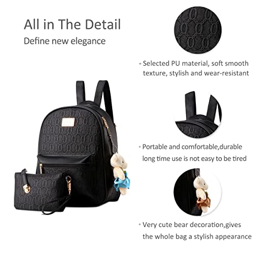 NICOLE&DORIS Zaino per donna Moda Zaino Antifurto Daypack Borse donna 2 pezzi Zaino per ragazza Set Nero