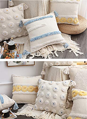 Design fantastico: la cerniera invisibile rende facile indossare e togliere. Tessuto spesso e di buona qualità. Perfetta federa per cuscino in stile bohémien. Il caldo sfondo avorio e lo spesso accento in filato color crema aggiungono stile e comfort alla tua casa.