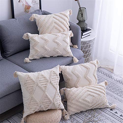 Splendido design: la cerniera invisibile rende più facile indossare e togliere. Tessuto spesso, buona qualità. Federa perfetta per cuscino in stile boho. Lo sfondo caldo avorio e il filato color crema aggiungono stile e comfort alla tua casa.