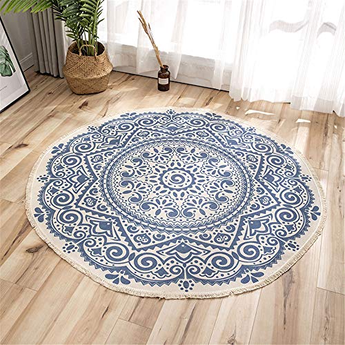 Nicole Knupfer - Tappeto rotondo con mandala, nappe in cotone, stile bohémien, boho, diametro 92 cm (H)
