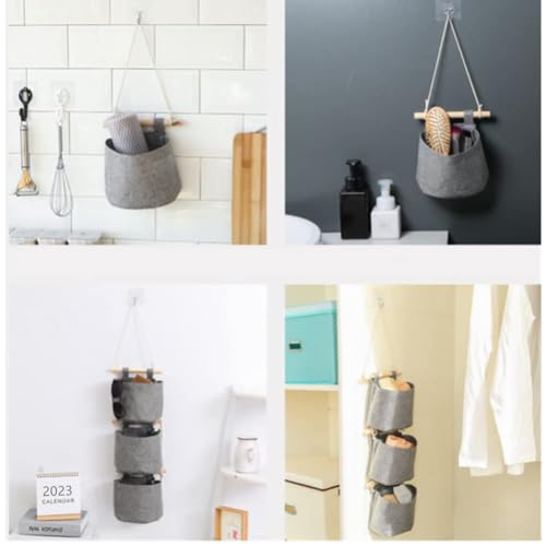 Nicoone Portaoggetti da Appendere,Portatutto con 3 Scomparti,Tasche Portaoggetti Lino Cotone da Appendere per Casa e Ufficio