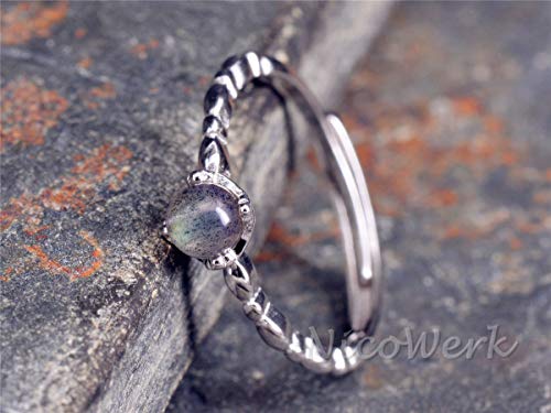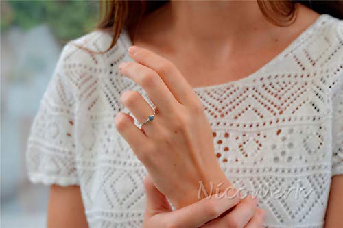 NicoWerk - Anello da donna in argento Sterling 925, con pietra di luna e pietra blu liscia, discreto, regolabile, SRI344