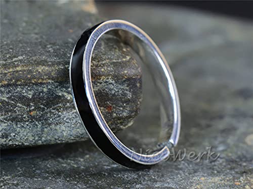 NicoWerk Anello da donna in argento Sterling 925 smaltato nero, sottile, liscio, regolabile