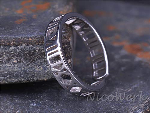 NicoWerk, anello da donna in argento sterling 925, sottile, liscio, numeri romani, regolabile, aperto