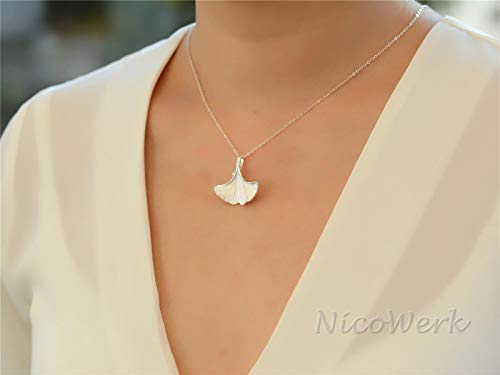 NicoWerk Collana da donna in argento sterling 925 con foglia di ginkgo Ginko, con foglia naturale SKE519