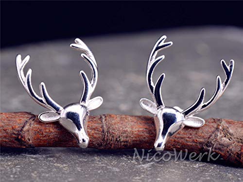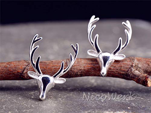 NicoWerk Orecchini da donna in argento sterling 925, cervo, corno di cervo, lisci, SOS285