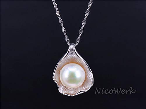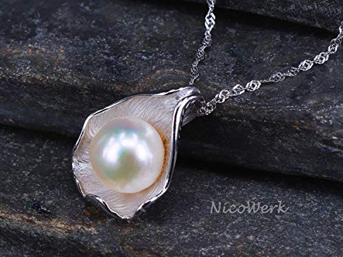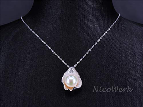 NicoWerk PKE137 - Collana da donna con conchiglia in argento sterling 925 e perla coltivata autentica bianca, grande, PKE137, perla